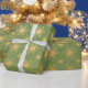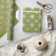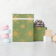Flocos de neve de folha verde e dourada embrulhando papel.