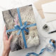 Enrole seu presente em um papel embrulho distinto com uma foto repetida de montanhas altas do deserto nas terras baixas da Mesa Azul do Parque Nacional da Floresta Petrificada perto de Holbrook, Arizona. As montanhas rochosas multicoloridas têm muitas fendas e trapos cheios de sombras mostrando a textura das formações. Um céu azul claro contrasta a paisagem do deserto. Para ver a fotografia Blue Mesa Badlands Desert Mountain em outros itens, visite meu compro clicando no link "Rocklawn Arts" abaixo. 35 mm, fotografia a cores. Copyright © 2016 Claire E. Skinner. Todos os direitos reservados.