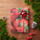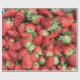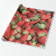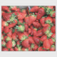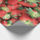 Papel de embrulho com uma fotografia colorida que inclui um monte de morangos vermelhos e lúcidos.