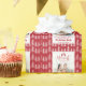 Embalagem de presente de Natal rústico e moderno para fotos de na moda de Natal. Com texto desenhado à mão moderno e árvores. Cor do fundo vermelho e branco