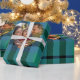 Papel De Presente Foto de Natal do Tartan Clássico Verde e Azul