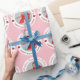 Papel De Presente Foto de Primeiro Aniversário Rosa Fofo com Frutas