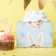 Adicione um toque fofo ao seu presente de feriado de Páscoa com este adorável padrão personalizado de orelhas coelhinhas com uma foto do seu menino ou menina. Adicione texto personalizado, como Felz pascoa e nome do seu filho. O fundo é um bonito azul pastel complementar. Faz um excelente de um presente para um menino ou uma menina!