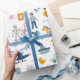 Adicione um toque personalizado ao presente de aniversário do seu filho com este adorável papel de embrulho. O presente tem um padrão de trem, carro, foguete, pirata, barco, helicóptero, robô, gato, coelho, pato, dinossauro e muito mais. Adicione uma foto e um nome na área azul para um toque personalizado. O papel de embrulho adiciona um excelente a um presente para um aniversário, Natal ou outro presente de Natal, especialmente para um menino!