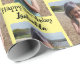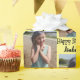 Folha de presente de aniversário personalizada com uma foto e um nome.