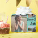 Folha de presente de aniversário personalizada com uma foto e um nome.