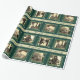 Fotos divertidas de feriado, enquadradas em conchas e perdizes. As fotos da família de Natal ligaram papel-presente em tons de verde-escuro e creme, com dicas de vermelho, verde limão, amarelo e branco. Personalize com cinco fotos pintadas de sua família ou do seu filho e sua própria mensagem, no momento, lê Feliz Natal da Família Jackson. Desenhado exclusivamente pela Sarah Trett.