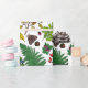 Padrão vetorial desenhado à mão com folhas florestais, samambaias, amoras diversas, besouros e mariposas