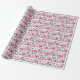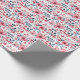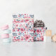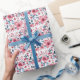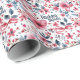 Bonito papel de embrulho de presente Feliz de Aniversário floral com esquema de cor patriótico vermelho, branco e azul.