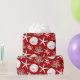 Um belo papel de embrulho de Natal costeiro apresenta um padrão de estrelas-do-mar, dólares de areia, e coral brilhante em um esquema de cor vermelha e branca. *Se você quiser que este design em mais produtos ou precisar de ajuda para o design, entre em contato comigo através do Zazzle Chat.