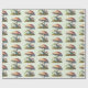 Wrapping paper with a cool illustration. Featuring a green frog sitting on a mound of grass. A big red mushroom sheltering him from the elements. A couple of little toadstools nearby.