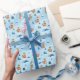 Charming red foxes in scarves wander a snowy blue forest of evergreens and mountains. Whimsical and wintery, perfect for cozy style.