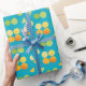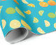 Este padrão de papel de revestimento frutado apresenta limões, limões e laranjas sobre um fundo azul lacrimogêneo. Perfeito para as pessoas que querem adicionar uma pop aos seus presentes.