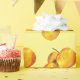 A mão branca desenhou a pera amarela numa cor de água vibrante. Fruta de design colorida e divertida.