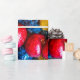 Este grupo caracteriza imagens fotográficas realísticas das texturas e das superfícies na vida quotidiana. Este é de uma caixa de bagas & da fruta assorted frescas, maduras. Morangos, mirtilos, framboesas do vermelho e do ouro, cerejas e amoras-pretas