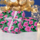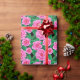 Papel De Presente Fuchsia Pink Camellias e Jade Green Folhas