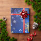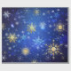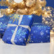 Papel De Presente Fundo Azul XMAS com Flocos de Neve Ouro