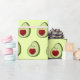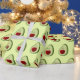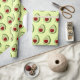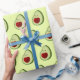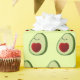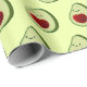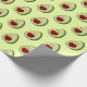 Cartoon estilo abacate fofo e fundo cardíaco vermelho. Rolos de papel decorativos personalizados de embrulho de presente. Dar uma ideia para amantes de abacate.
