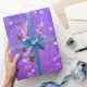 Fundo de faturas violetas com estrelas douradas e azuis. Fundo com estrelas.
