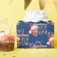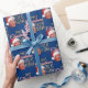 Imagem engraçada do Presidente Donald Trump vestindo um chapéu de Papai Noel com fundo azul. Um belo e humorístico papel de embrulho político para todas as suas necessidades de Férias. Natal em listras canaviais com luzes e diversão. Enrole um presente para sua mãe, pai, marido, esposa ou amigos apoiadores Trump. Opcional para alterar a cor escolhendo "personalizar mais"