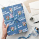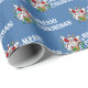 A funny snowman cartoon on Christmas wrapping paper. Use "Personalize this template" to change the "Merry Christmas!" text and create a unique, customized item. It's maximum Christmas with this excited snowman dressed up as Santa Claus, jumping out of a Christmas present like a jack-in-the-box. The surprise gift is wrapped in gold paisley wrapping paper and a green ribbon with white snowflakes.