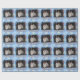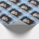 Uma foto de um grupo de galinhas preto e branco que pisam fora de uma entrada do celeiro na neve, bordadura por uma beira de flocos de neve azuis.