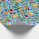 Papel De Presente Galinhas e flores silvestres em azul-bebê