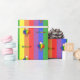 Um galo ilustrado em toda sua glória com suas penas de cauda prontas para um grito do arco-íris de De Colores para fora.