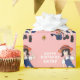 Gardening Girl com flores de sol Black Hair Feliz Aniversário Molhando Folhas de Papel. Um desenho de uma garota com flores em uma lata de água e girassóis. Na segunda folha está um padrão de girassol. Adicione seu texto e nome e faça um papel de embrulho de aniversário divertido para o presente de uma garota.