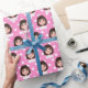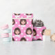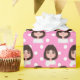 Um desenho animado de menina bonita sobre um padrão de bolinhas branco e de pinça