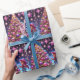 Garotinha parada em frente a uma bela árvore decorada em rosa e roxo Papel de presente de Natal Enrolado por Designs de Garota Dançante para a Loja de Dias Rodeo.