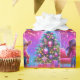 Garotinha parada em frente a uma bela árvore decorada em rosa e roxo Papel de presente de Natal Enrolado por Designs de Garota Dançante para a Loja de Dias Rodeo.