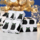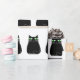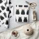 Gato preto estilo cartoon bonito. Rolos de papel de embrulho de presente preto e branco. Ideia de decoração.
