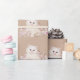 Belo gatinho persa branco senta-se em fitas que ela tem pensado em brincar com e epitomiza amantes bonitinhos de gatos qualquer ocasião embrulhando papel