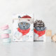 Papel De Presente Gato Cinza Fofo Aquarela com Cachecol e Chapéu de