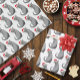 Um gato cinza vestindo um chapéu vermelho de Papai Noel. O gato da cinza está rabugento no Natal