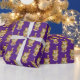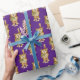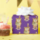 Gato de mesa bonitinho com arco verde sobre fundo roxo. A cor de fundo pode ser alterada.