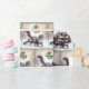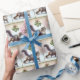 Um gato fofo caminha graciosamente debaixo de uma concha de Natal enquanto um pequeno rato se agarra à cauda