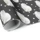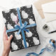 Gato persa branco giro em bolinhas brancas e fundo preto.