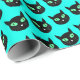 Papel De Presente Gato preto com olhos verdes em azul-turquesa
