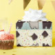 Embalagem de presente de graduação única ou decoração de festas com gatos engraçados jogando bonés de formatura no ar. Editar texto para adicionar o nome do formando escolar veterinário ou qualquer formando de uma escola com um mascote de gato grande.