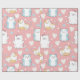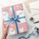 Papel De Presente gatos gordinhos em azul pastel, branco e rosa