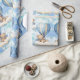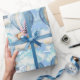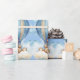 Um belo papel azul de embrulho. Ursos gêmeos flutuando nas nuvens em balões de ar quente. Perfeito para presentes gêmeos recém-nascidos, presentes de chá de fraldas ou até aniversários para gêmeos jovens.