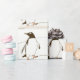 Este belo presente invulgar é perfeito para embrulhar todos os presentes de Natal. Ele tem um fundo branco comum decorado com uma imagem em forma de tiled de um Pinguim Gentil preto e branco, com pés e notas cor de laranja