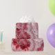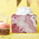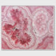 Cristais e bandas cor-de-rosa e branco nesta fotografia de um geode.