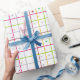 Papel De Presente Geometric Grid Pattern with Scattered Hearts