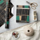 Geométrico, abstrato, preto, turquesa, ouro, castanho, faixas, linhas, xadrez, preto e turquesa