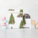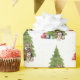 German shepherd de aquarela com cachecol de inverno e presentes de Natal por árvore de Natal em flocos de neve em fundo branco. A cor de fundo pode ser alterada.
