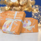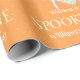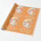Lua amarela assustadora sobre fundo laranja e um fantasma fofo com um amigo coruja. Perfeito para uma cutena assustadora Boo! Personalize o nome do seu bebê para um papel de embrulho de presente de primeiro aniversario Spooktacular de Halloween.