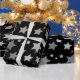 Embrulhar com um padrão de estrela clássico em cinzas e preto. O fundo preto que pode ser alterado para qualquer cor. O texto do dia do casamento pode ser personalizado para se adequar a qualquer ocasião especial, e mudado para qualquer cor para coordenar com o estilo de cor da noiva e do noivo.